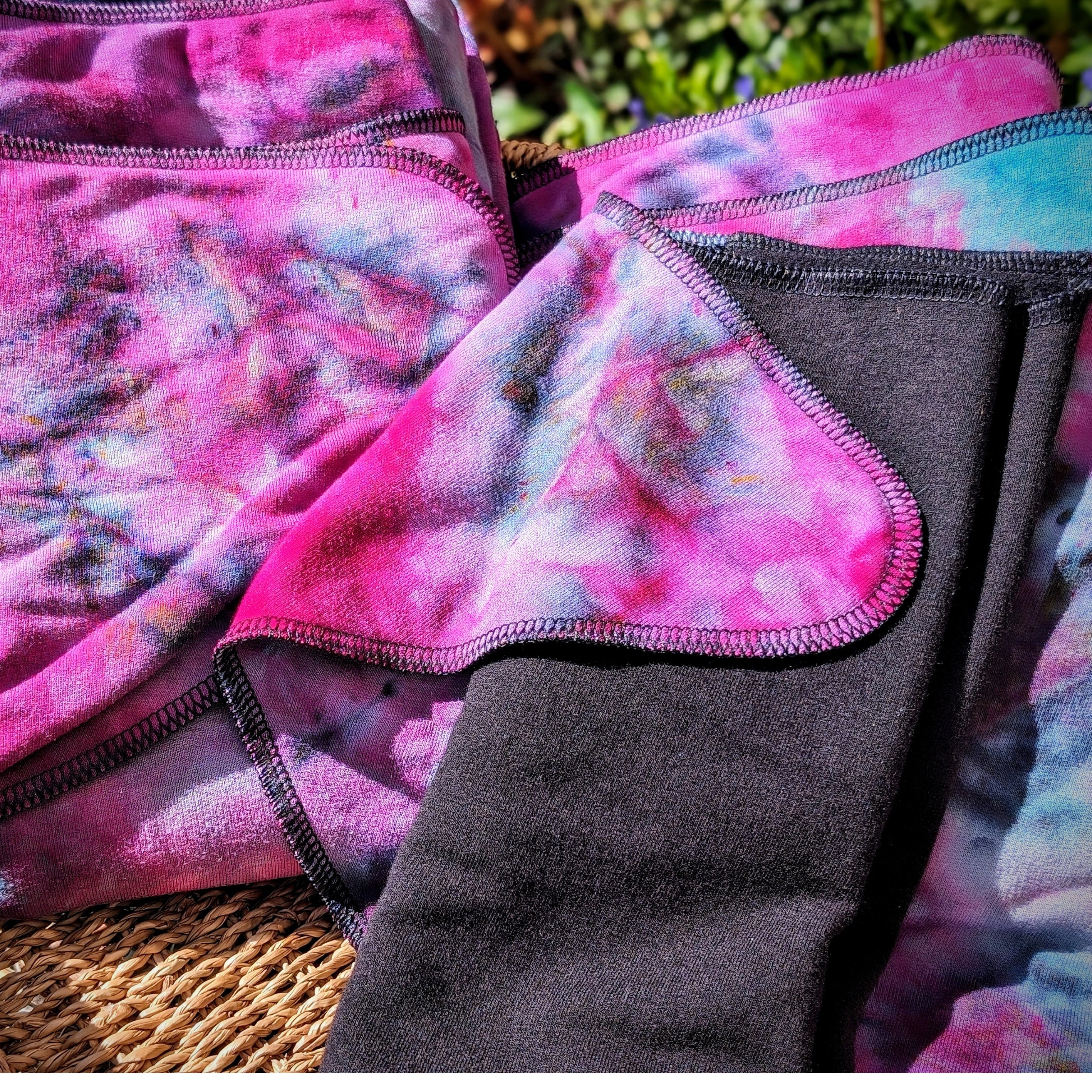 Our Fixed Flats come in prints, solids, naturals, and hand-dyed options so there is something for everyone to love! The hand-dyed options are ice dyed with fiber reactive dye, creating a permanent molecular bond to the fabric. These colors are vibrant and will not fade! Please note that hand-dyed items may have excess dye remaining in them and will need soaked and washed separately before wearing and washing with a mixed load. Also, with the technique used, there are no two alike, making each a unique work of art! We also offer a large variety of fabric blends including those that have organic cotton, merino wool, hemp, lyocell, and bamboo viscose. Please see the care card that comes with your order with instructions on wash and how to prepare each type of fabric for absorbent use. You can also find detailed washing/care instructions on our website HERE.
