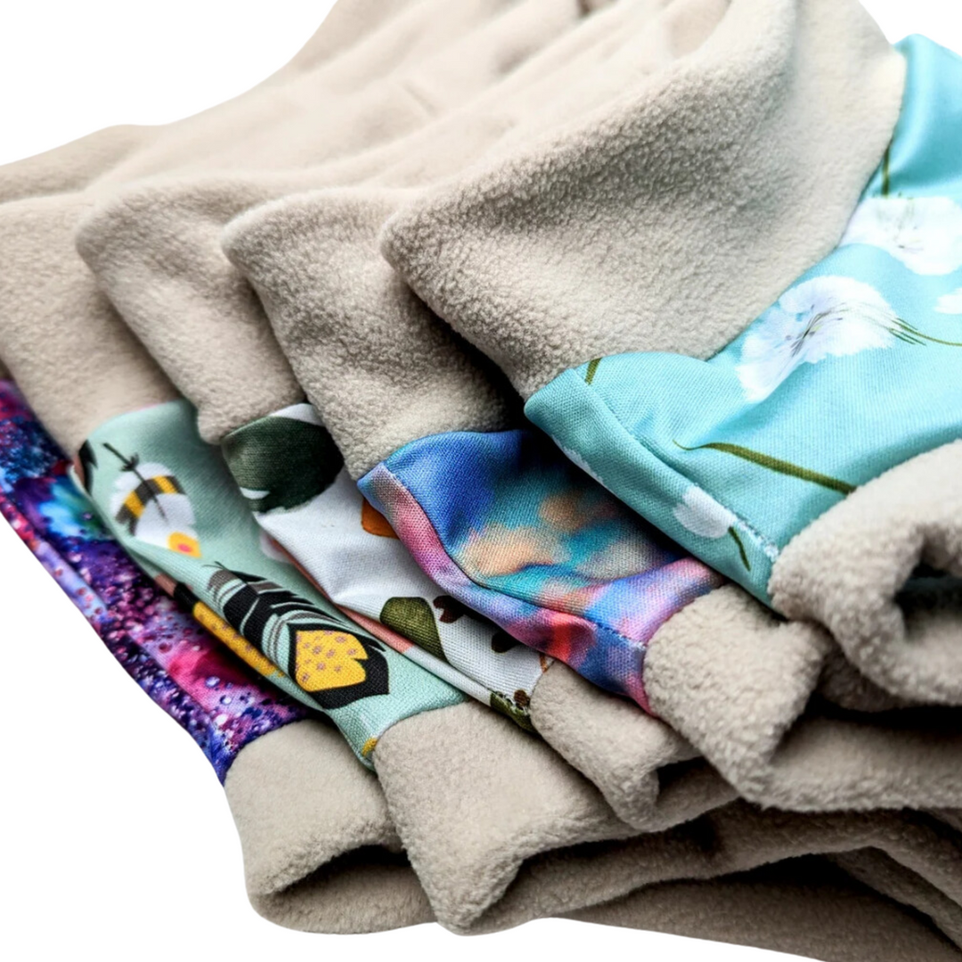 Made from Dintex Waterproof Softshell fabric, these liners extend wear-time by pushing moisture back into the insert. Placed under absorbent layers, they are perfect for cover-free time, preventing flooding, and adding waterproof security to any diaper.